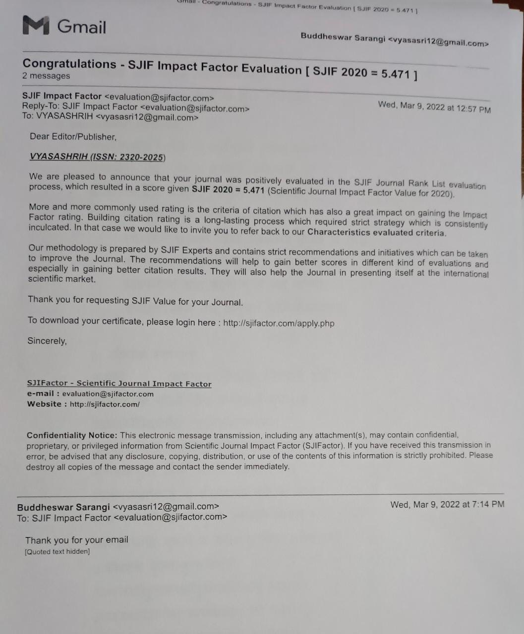 vyasashree XVIII Cover page